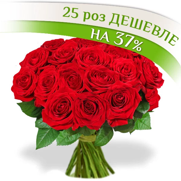 25 роза: роза красная - 25 шт. (высота розы - 50 см).